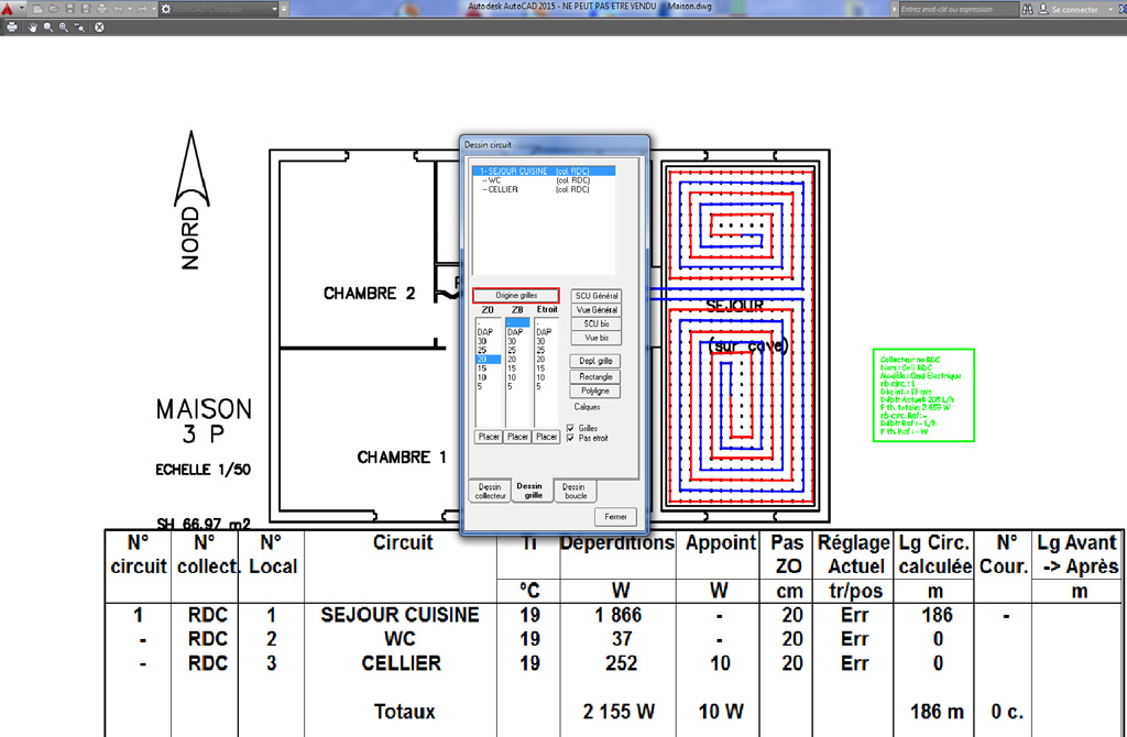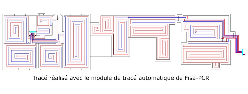 Un module de dessin permet de récupérer les métrés nécessaires au calcul directement depuis AutoCAD. Après calcul, il permet de réaliser le dessin d’incorporation du plancher avec le report d’informations indispensables pour le poseur comme la longueur de boucle ou le réglage du collecteur.