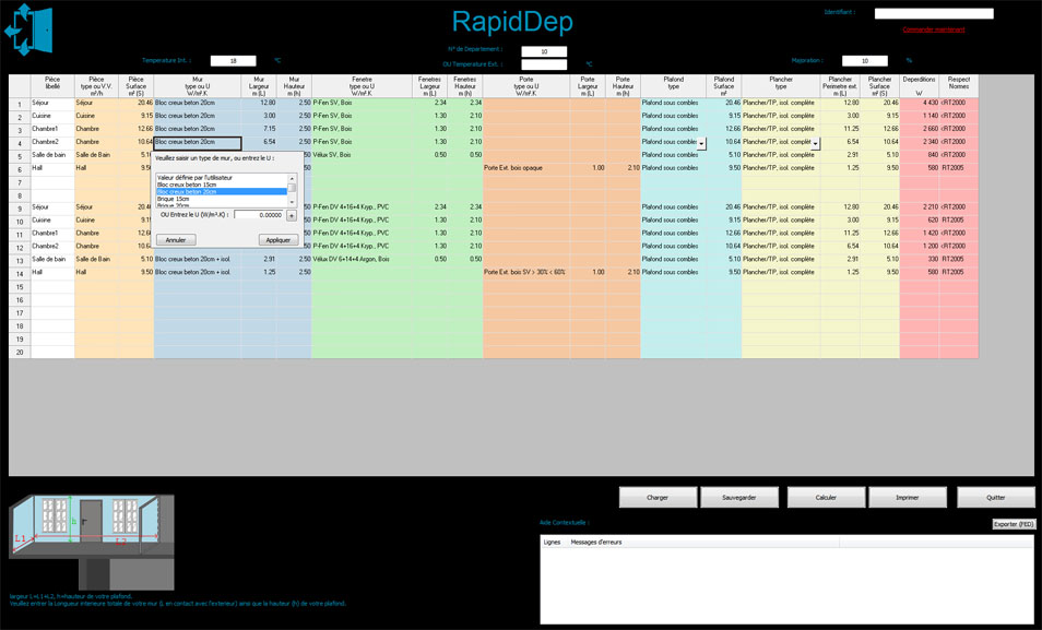 RapidDEP application pour le calcul rapide des déperditions